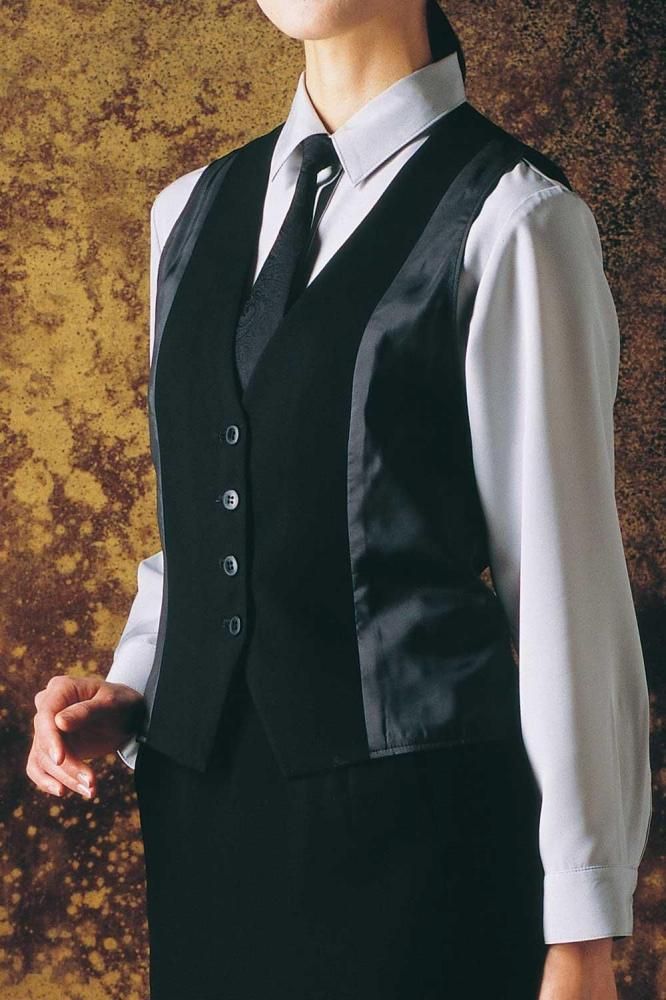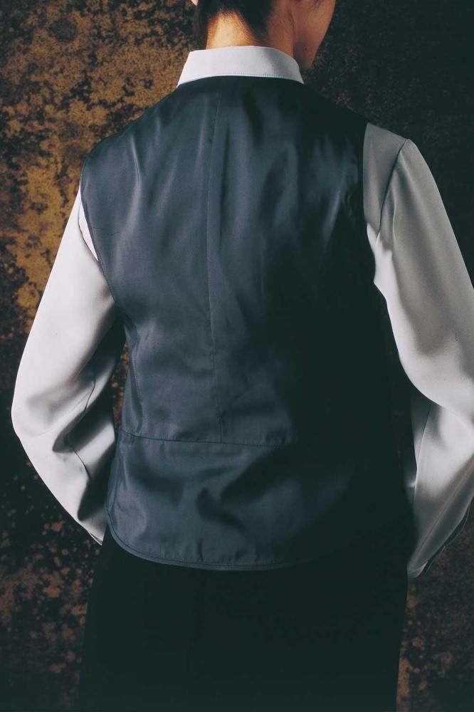ジャケットから見える部分は、黒のシルブラックを使用。ジャケットを羽織れば暖か仕様のベストと分からずスマートに着ていただけます。