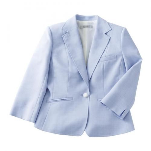 爽やかな薄いブルーで、袖口が折り返せる一つボタンジャケット